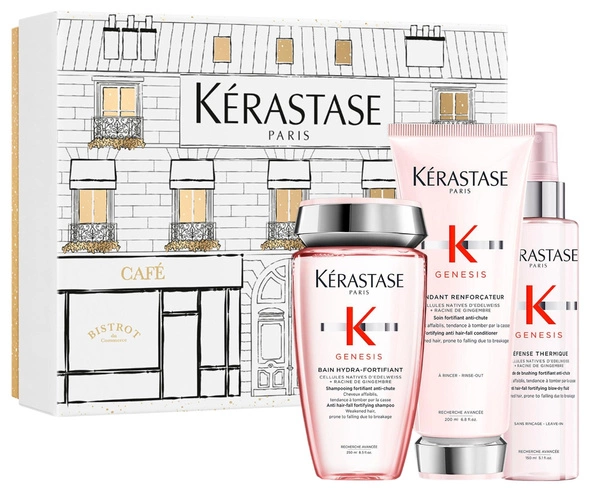 Zestaw Kérastase Genesis to kompleksowa kuracja dla włosów osłabionych i z tendencją do wypadania. Trzy uzupełniające się produkty wzmacniają włókna włosów, chronią przed łamliwością i wspierają zdrowy wzrost.