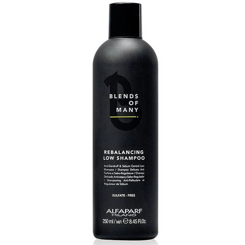 - Alfaparf Blends Of Many Rebalancing Low Shampoo - niskopieniący szampon równoważący o działaniu przeciwłupieżowym i regulującym pracę gruczołów łojowych.