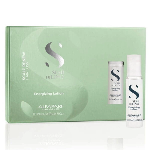 Ampułki Alfaparf Semi di Lino Scalp Renew Energizing Loton to energetyzujący zabieg przeznaczony do włosów wypadających i osłabionych. Koncentrat o intensywnym działaniu stymulującym, przedłuża życie cebulki włosa oraz doskonale wzmacnia i zagęszcza włosy dodając im siły witalnej.