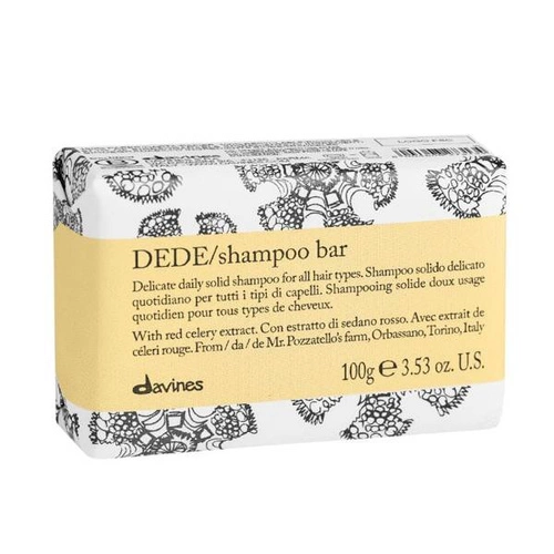 - Davines DEDE Shampoo Bar to nowoczesny szampon w kostce, który doskonale odpowiada na potrzeby ekologicznych i świadomych konsumentów. Wyjątkowe opakowanie, w 100% wykonane z papieru z możliwością recyklingu.