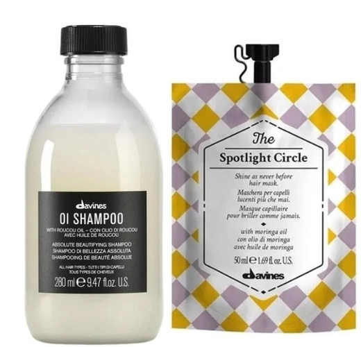 Zestaw Davines OI Szampon + The Spotlight Circle Maska to kompleksowa pielęgnacja, która zapewnia Twoim włosom zdrowie, blask i objętość. Szampon delikatnie oczyszcza, a maska nadaje włosom intensywnego blasku, dzięki czemu będą wyglądały jak po wizycie u profesjonalnego stylisty. Idealny wybór na co dzień oraz przed ważnymi wydarzeniami!