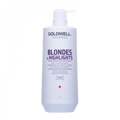 Goldwell Dualsenses Blondes & Highlights Anti Yellow Shampoo to szampon dedykowany włosom rozjaśnianym oraz w kolorze blond. Dzięki unikalnej formule FadeStopFormula aktywnie wzmacnia zakotwiczenie cząsteczek koloru we włóknie włosa a kremowa formuła szamponu delikatnie oczyszcza włosy. Wzbogacony o kompleks microProtec i Luminescine doskonale nabłyszcza i powoduje, iż włosy nie splątują się i lepiej układają. Produkt do profesjonalnej pielęgnacji włosów. W celu uzyskania optymalnego rezultatu zaleca się stosować wraz z innymi produktami Goldwell z serii Blondes & Highlights..