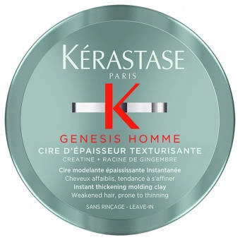 - >Natychmiastowe Wzmocnienie i Pogrubienie: Kérastase Genesis Homme Cire d'Épaisseur Texturisante wzmacnia i zagęszcza osłabione włókna włosowe, zapewniając im większą objętość i pełniejszy wygląd już po pierwszym użyciu.