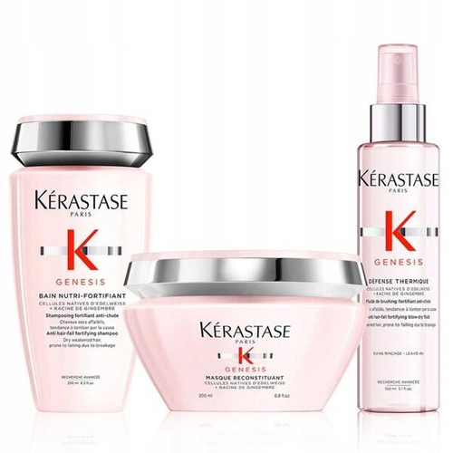 - Zestaw Kérastase Genesis to kompleksowa odpowiedź na potrzeby włosów grubych i suchych, zapewniający nie tylko intensywne odżywienie i nawilżenie, ale również ochronę przed wysoką temperaturą i długotrwałą poprawę kondycji włosów.