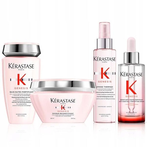 Przywróć swoim włosom gęstość, siłę i zdrowy wygląd dzięki zaawansowanemu zestawowi Kérastase Genesis, który oferuje kompleksową pielęgnację od nasady po same końce.