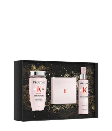 Zestaw Kerastase Genesis działa na włosy wielokierunkowo, zapewniając im wzmocnienie, ochronę oraz regenerację. Dzięki innowacyjnym składnikom, produkty zapobiegają wypadaniu włosów, jednocześnie je wzmacniając. Szampon delikatnie oczyszcza skórę głowy i włosy, a maska intensywnie regeneruje i odżywia, natomiast spray termiczny zapewnia ochronę przed uszkodzeniami termicznymi podczas stylizacji.