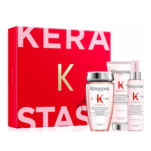 Kérastase Luxury Value Set Genesis to ekskluzywny zestaw prezentowy, który koncentruje się na wzmacnianiu włosów od korzenia do końcówek. Zawiera kluczowe produkty, które pomagają w pielęgnacji, odbudowie i ochronie włosów, zapewniając im zdrowy wygląd i witalność.Zawartość zestawu: