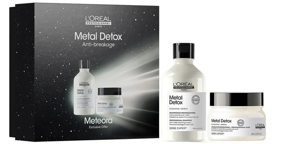- Zestaw L’Oréal Professionnel Meteora Metal Detox to zaawansowana kuracja pielęgnacyjna stworzona z myślą o włosach farbowanych, rozjaśnianych i zniszczonych.