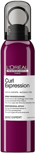 - Skróć czas suszenia włosów falowanych i kręconych oraz wykreuj pożądaną stylizację w rekordowo krótkim czasie. Opracowany we współpracy z ekspertami spray bez spłukiwania L'Oréal Professionnel Curl Expression pielęgnuje włosy i skraca czas suszenia o 37%.