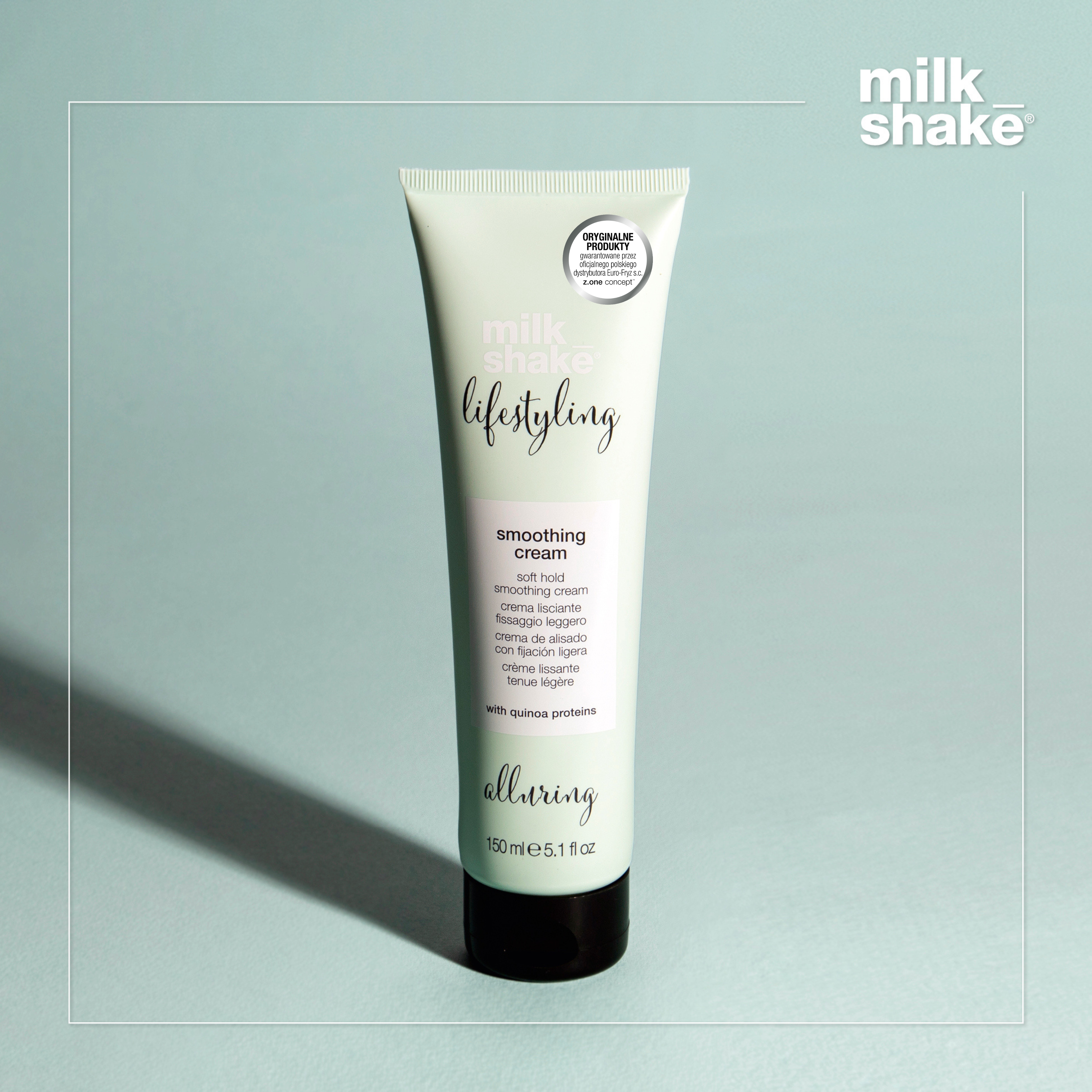 Wygładzający krem Milk Shake Lifestyling jest przeznaczony do każdego typu włosów. Dzięki zawartości wysokiego poziomu filtru UV chroni on włosy przed wysuszeniem oraz blaknięciem koloru. Produkt dzięki proteinom jedwabiu nadaje wspaniały efekt nawilżający, a białka komosy ryżowej ułatwiają codzienną stylizację.