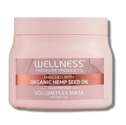 Nawilżająca maska dedykowana do włosów cienkich z tendencją do przetłuszczania się. Powstała na bazie organicznego oleju z nasion konopi, który sprawia, że włosy są nawilżone, wzmocnione, elastyczne i pełne objętości, stają się miękkie i błyszczące już po pierwszym użyciu. Innowacyjna formuła zawiera opatentowaną technologię mikrokapsułek, która regeneruje mieszki włosowe od wewnątrz i pobudza mikrokrążenie skóry głowy, niezbędne do zdrowego wzrostu nowych włosów. Maska Wellness Volumeplex naprawia uszkodzenia, ułatwia rozczesywanie i stylizację. Ponadto jest bezpieczna dla koloru. Nie zawiera parabenów, glutenu i chlorku sodu.