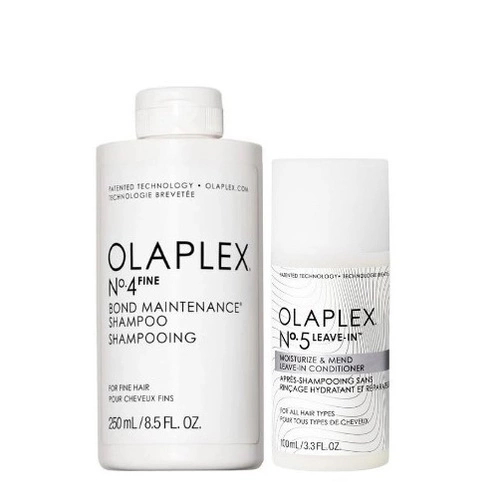 Zestaw odbudowująco-nawilżający do włosów cienkich – Olaplex No.4 Fine + Olaplex No.5 Leave-In Moisturizer